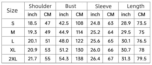 - Size: S, M, L, XL, 2XL